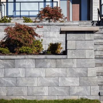 Whether you’re managing a slope or framing a landscape feature, our Belgard retaining wall systems combine form and function. Built for stability and drainage, these walls can also include integrated columns, seating, lighting, and steps for a polished finish.